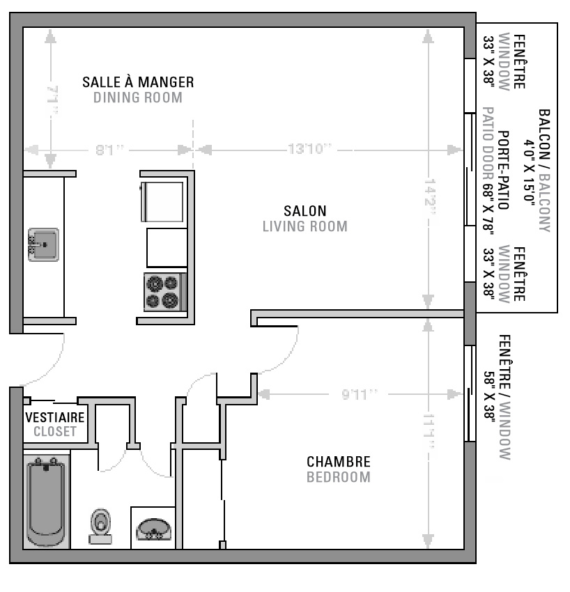 1 065 $ par mois non meublé