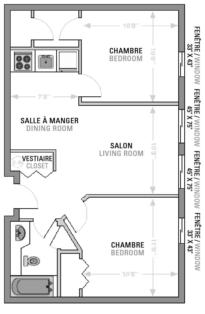 Le Central is a 180-unit building offering a secure living environment that’s perfect for students. Apartments are available unfurnished or semi-furnished. On-site amenities include a fitness center and a study room. The complex is located in the Cité-Universitaire district of Sainte-Foy–Sillery–Cap-Rouge and is close to major roads, public transit, Université Laval, cégeps, Champlain St-Lawrence College and main services. Choose Le Central for vibrant, upbeat neighborhood living minutes from anywhere.