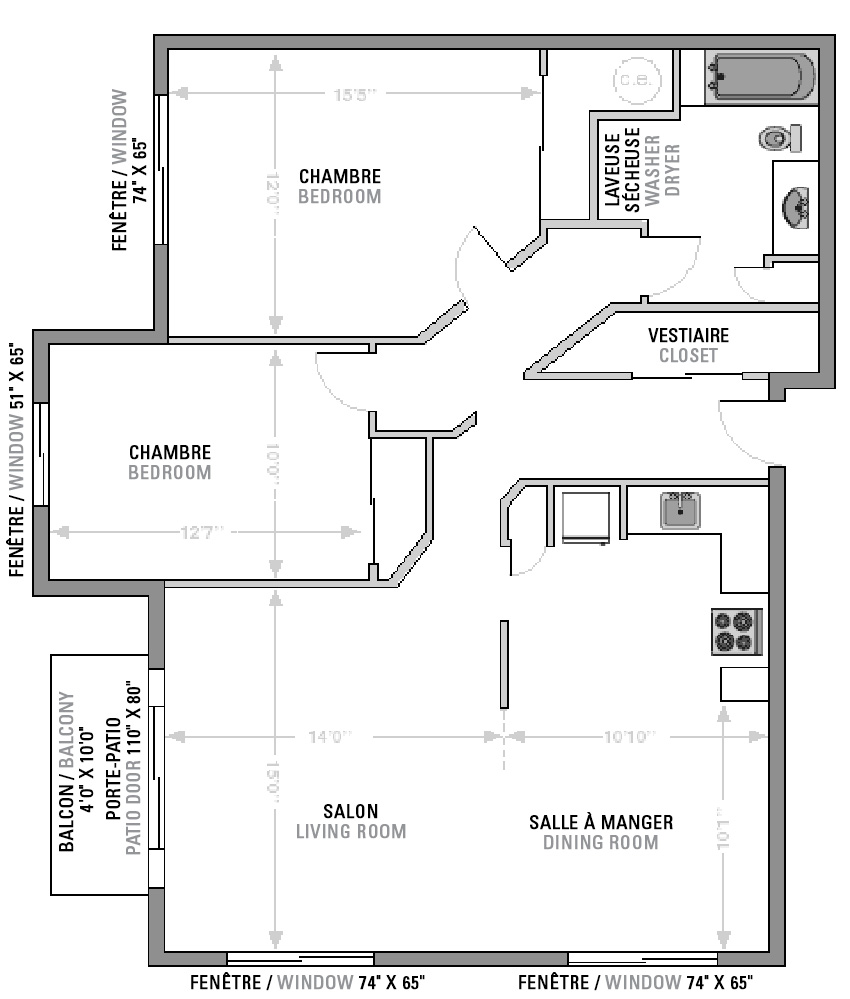 Place du Hâvre is a three-building complxe with 121 apartments that is located to the north of Nouvo Saint-Roch, just minutes from Parc de la Pointe-aux-lièvres, Old Quebec, the Old Port, and Vieux-Limoilou. It boasts excellent access to public transit as well as major roads and the A73, and is close to shops, restaurants, and the Stade Canac. Enjoy modern living in a vibrant neighborhood.